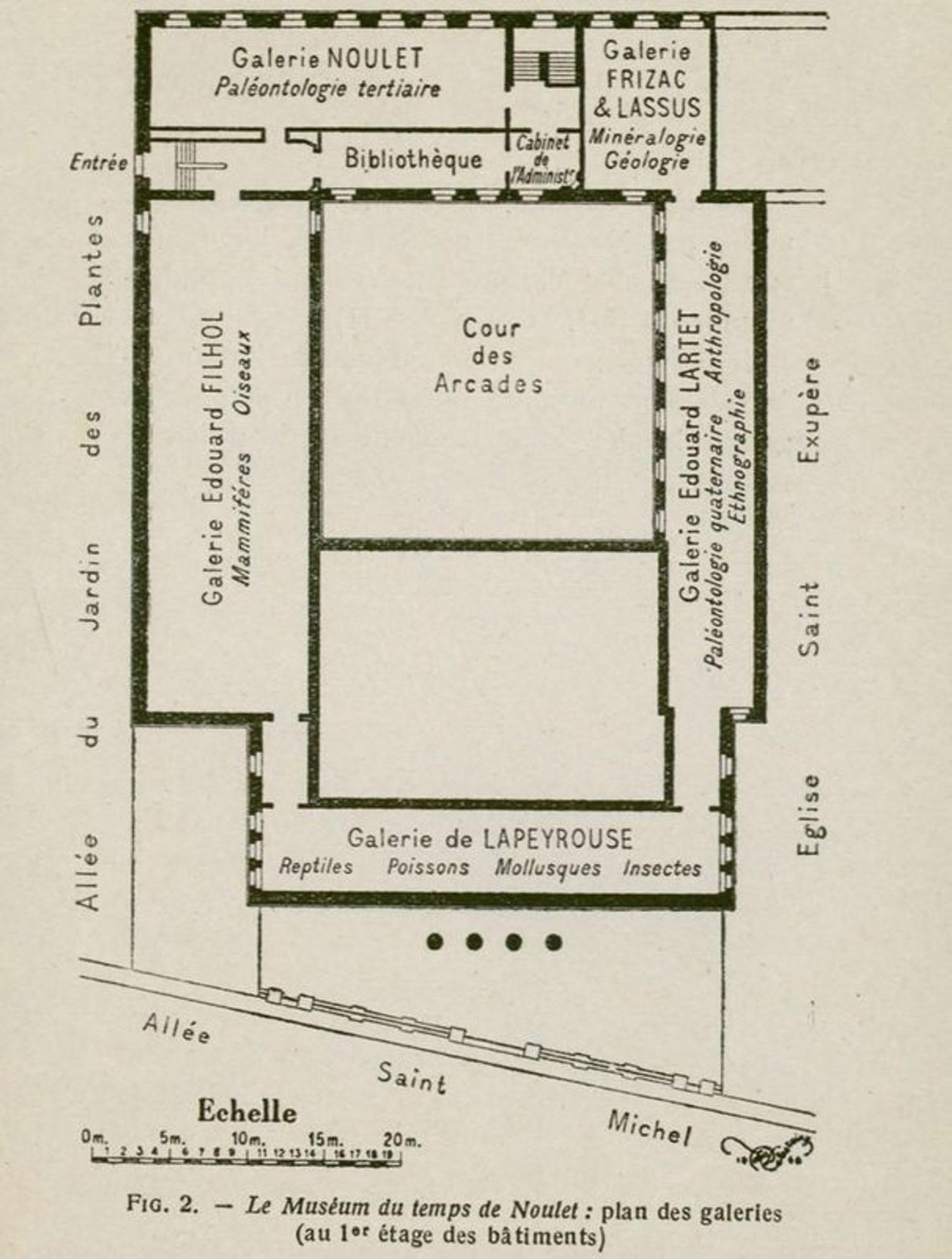 Plan du muséum comprenant la bibliothèque issu du Muséum et son Histoire de Gaston Astre – coll. muséum, cote D575